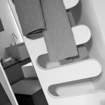 Il pettine protagonista indiscusso della zona bagno, simpaticamente riproposto come specchiera portasalviette, può essere appoggiato oppure appeso alla parete.