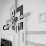 Elementi sinergici si incastrano fra di loro, contrapposti da elementi isolati che fluttuano solitari. Simpatico sistema a cornici con corpo centrale, personalizzabile nelle forme e negli elementi.