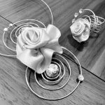 Parure artigianale realizzate sul momento abbinata ad un raffinato abito da cerimonia, fili d’argento e raso pregiato caratterizzano questo gioiello