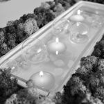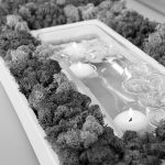 Centrotavola decorativo completo di vaschetta vetro protacandele, la zona verde creata con particolari licheni stabilizzati, non necessita alcuna manutenzione. La vasca centrale è facilmente estraibile per permettere una rapida pulizia.