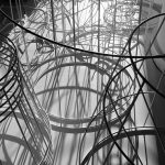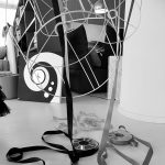 Originale e unica la lampada installazione creata su misura da BibanArt, fusione di svariati telai agganciati fra loro delineano il corpo centrale completo di corpo luce. Nastri decorativi scendono in una cascata casuale di colori e sensazioni.