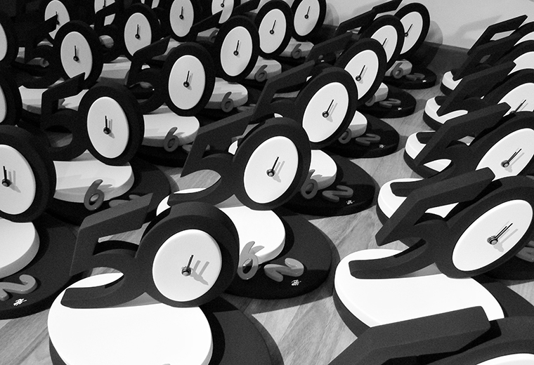FIFTY Orologio realizzato in serie per anniversario, scultura con numero verticale su doppia alzata ovale, completo...