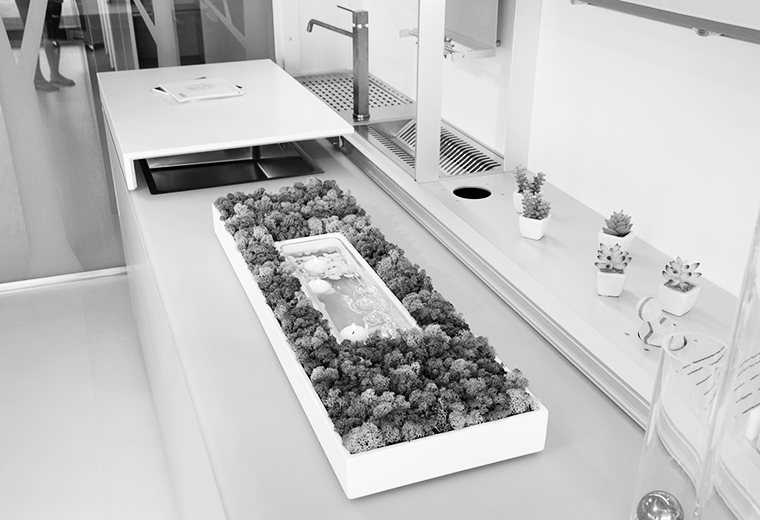 ISLAND Centrotavola decorativo completo di vaschetta vetro protacandele, la zona verde creata con particolari licheni stabilizzati,...